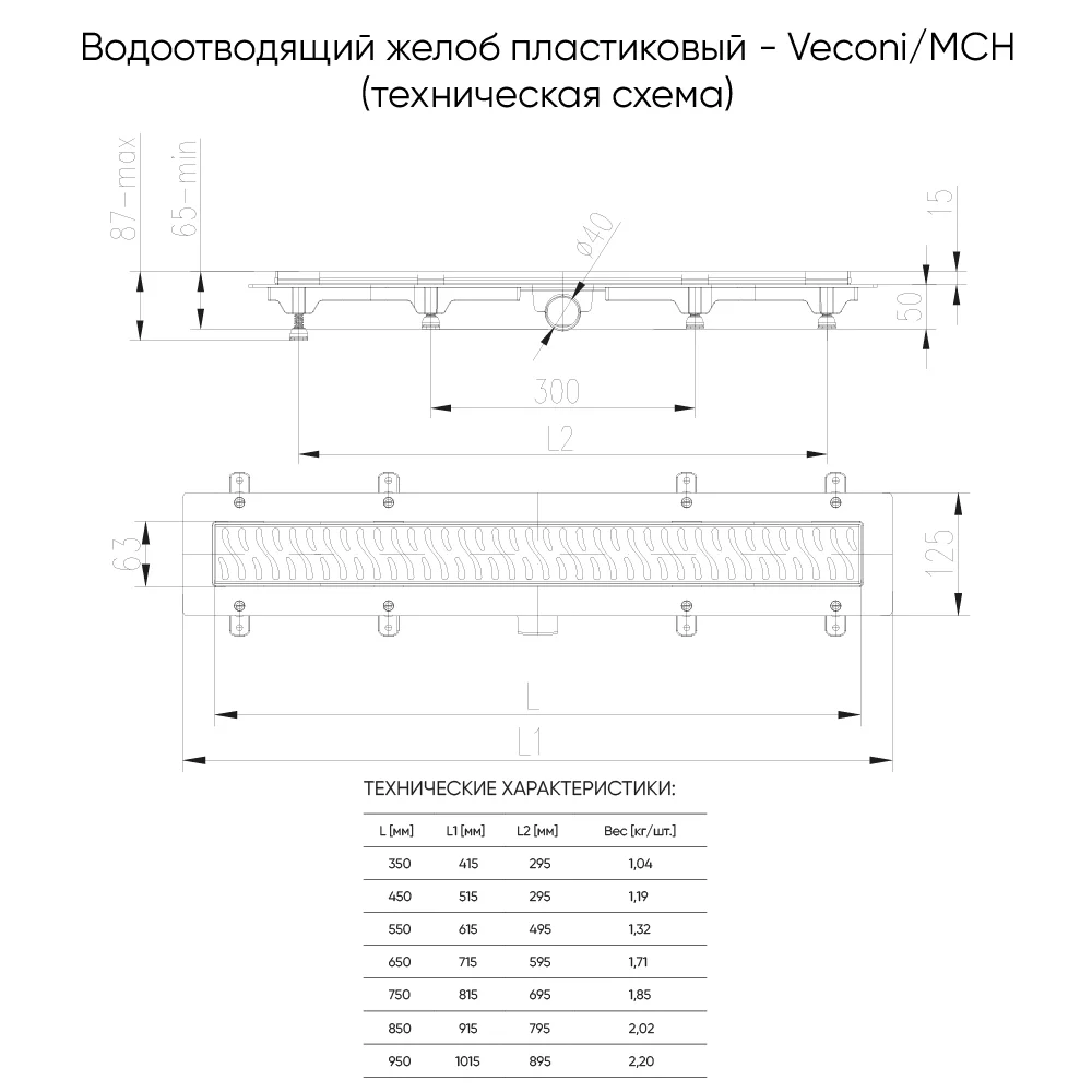 Душевой трап Veconi Klasik Black V750KB 750 мм (чёрный матовый)