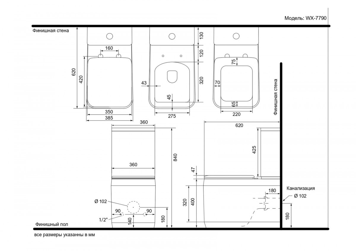 - Комфортные размеры делают модель подходящей как для компактных санузлов, так и для просторных ванных комнат.