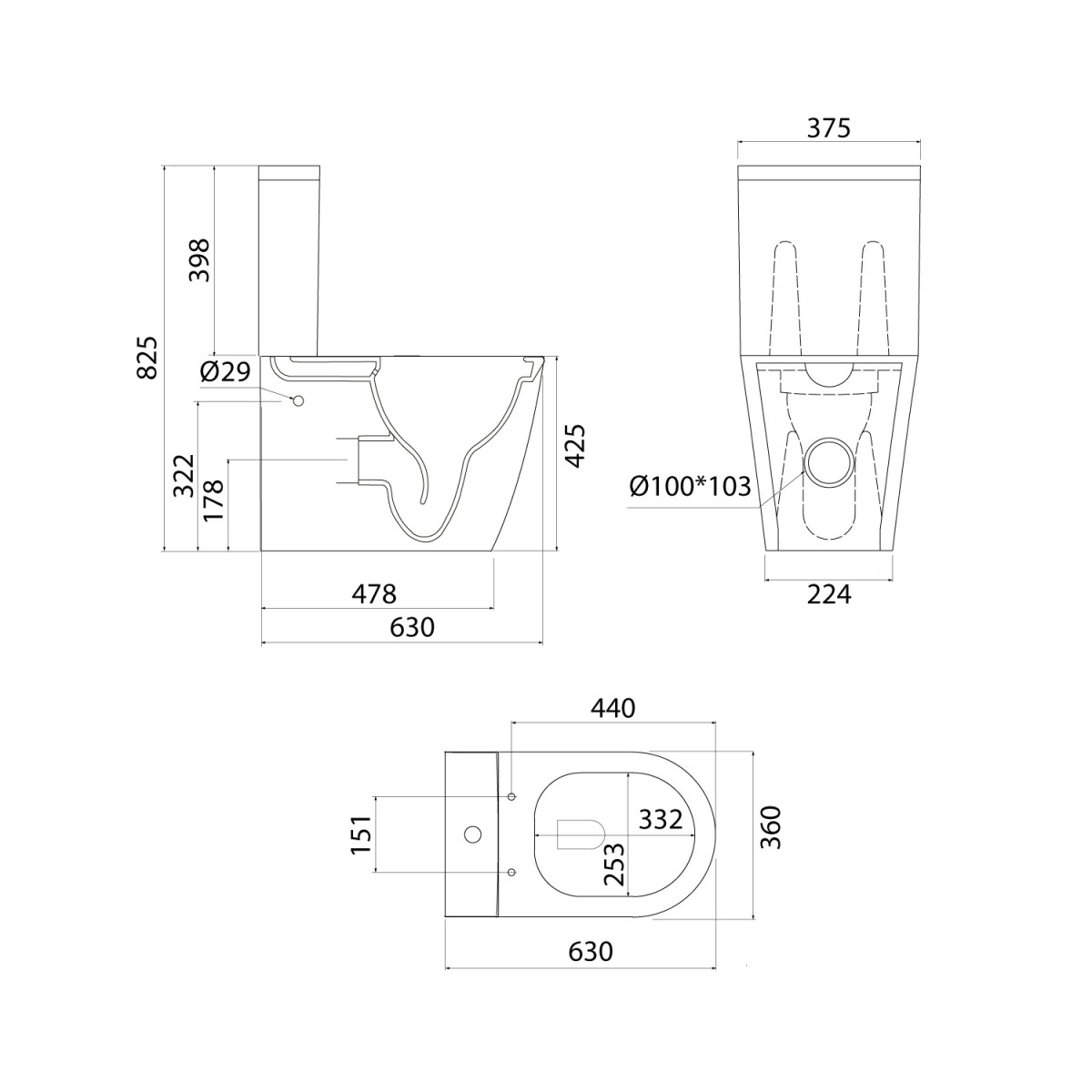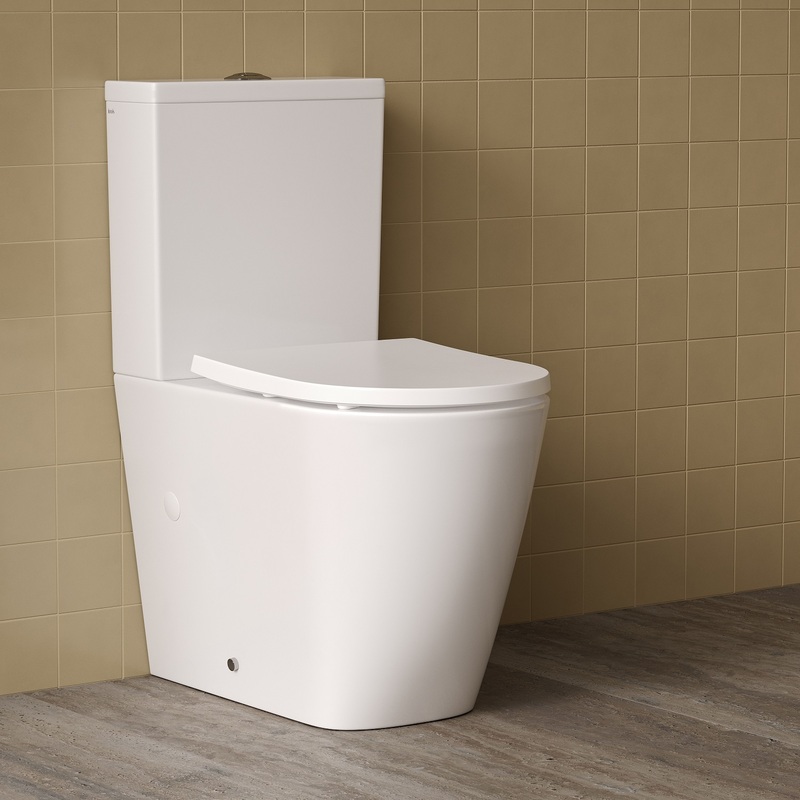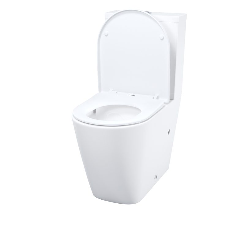 Конструкция с закрытой чашей позволяет установить унитаз вплотную к стене. На случай, если вода будет подводиться сбоку, по обеим сторонам предусмотрены отверстия; их можно закрыть заглушкой при необходимости.