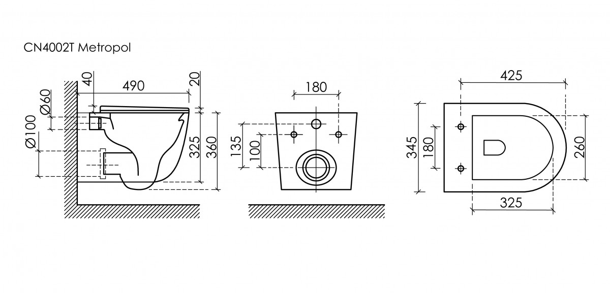 Подвесной унитаз Metropol Торнадо безободковый, глубокий смыв, с ультратонким сидением с микролифтом, с крепежом для полностью скрытого монтажа. Крышка-сиденье с функцией быстрого снятия.
