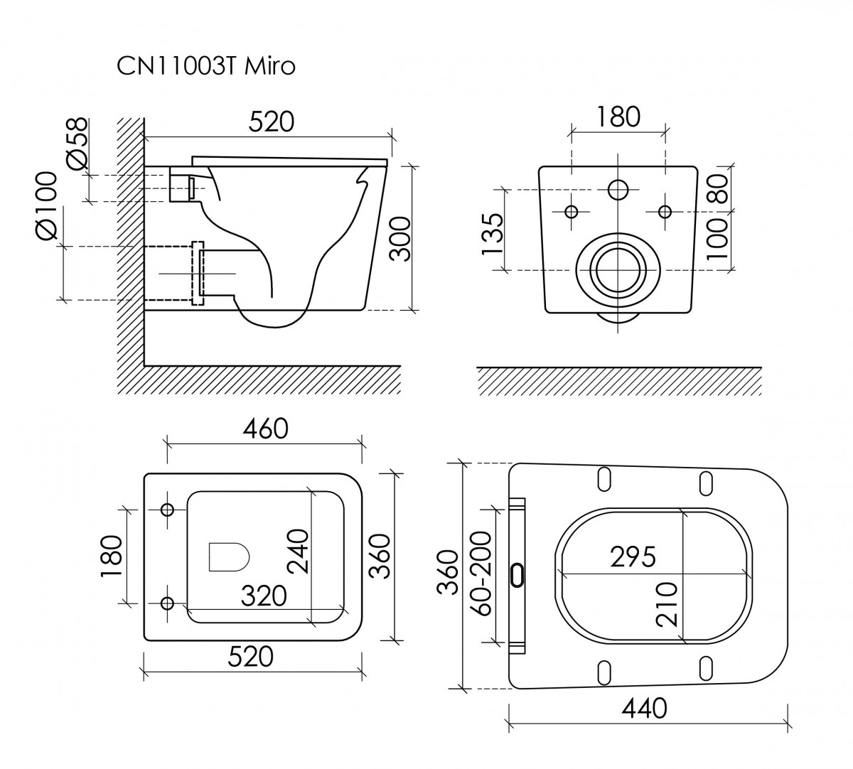 Подвесной унитаз Ceramica Nova Miro CN11003T безободковый (белый) смыв торнадо