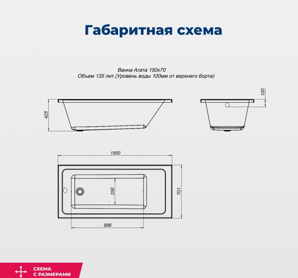 Акриловая ванна Aquanet Agata 150x70 (с каркасом)