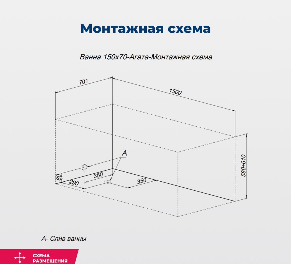 Ванна акриловая Aquanet Agata 352892 1500*700 мм (белый) с каркасом
