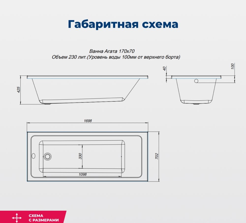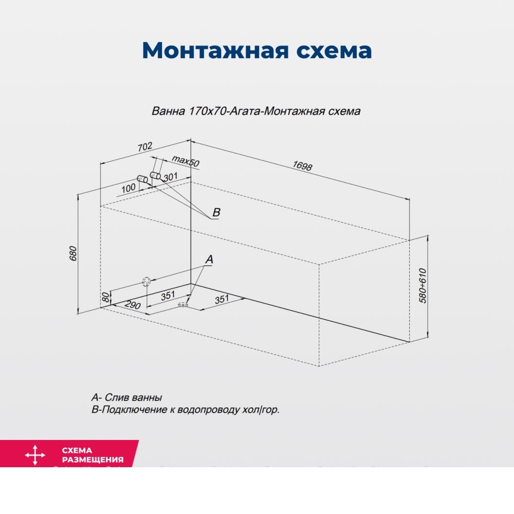 Ванна акриловая Aquanet Agata 352894 1700*700 мм (белый) с каркасом