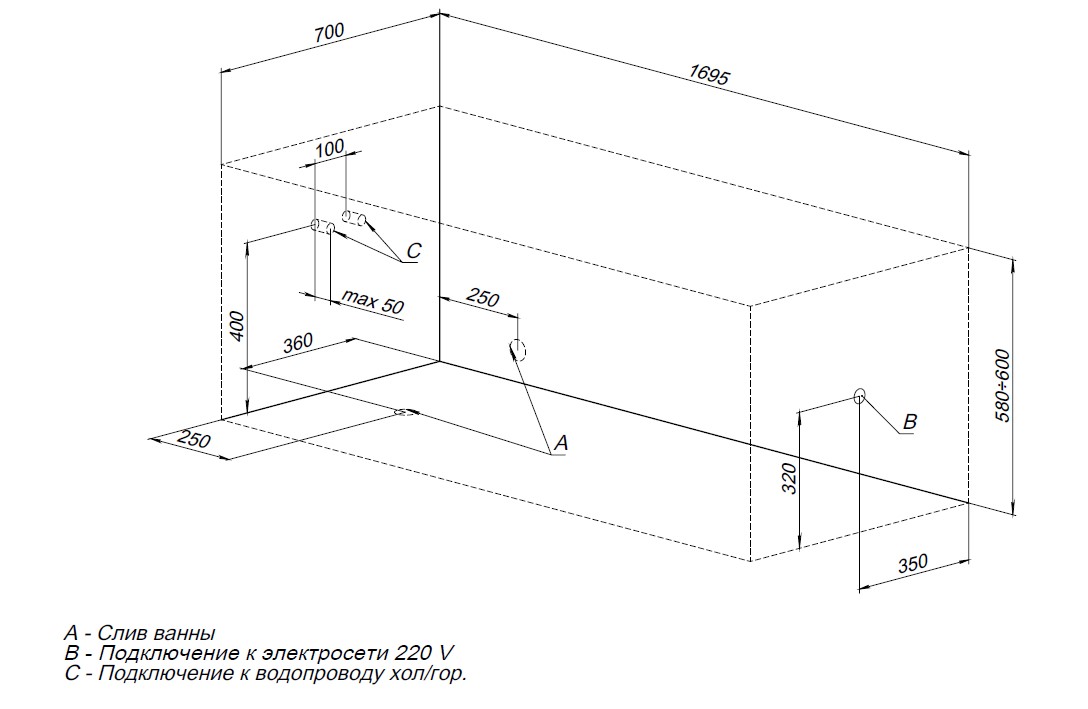 ВНИМАНИЕ! Фронтальная или боковая панель, а также слив-перелив в стоимость не входят и заказываются дополнительно из числа предложенных.