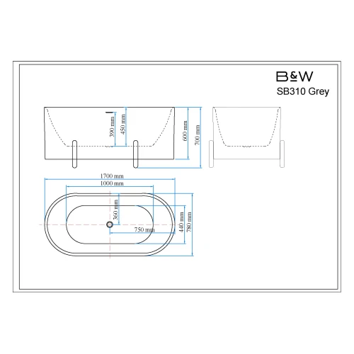 Ванна акриловая Black&White Swan 310SBGR 170*78 см (серый матовый/белый)