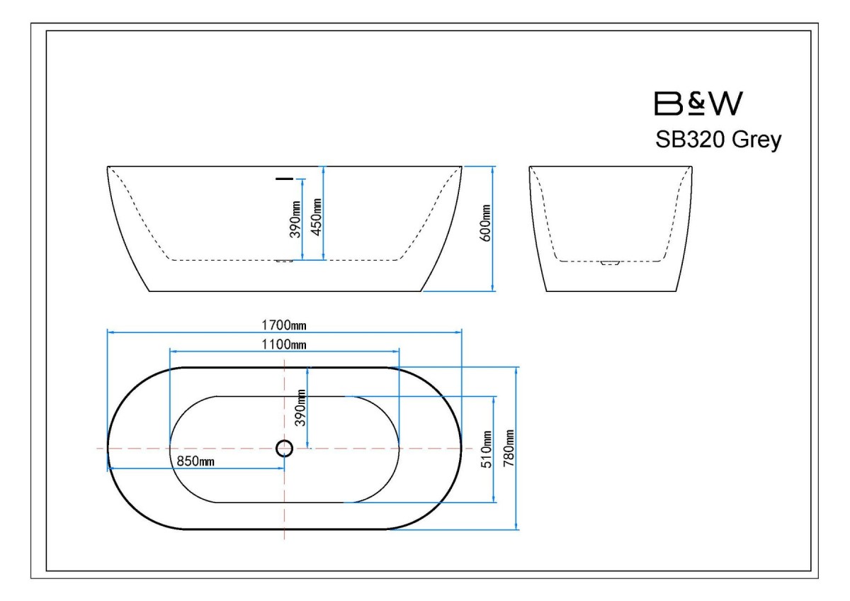 Ванна акриловая Black&White Swan 320SBGR 170*78 см (серый)
