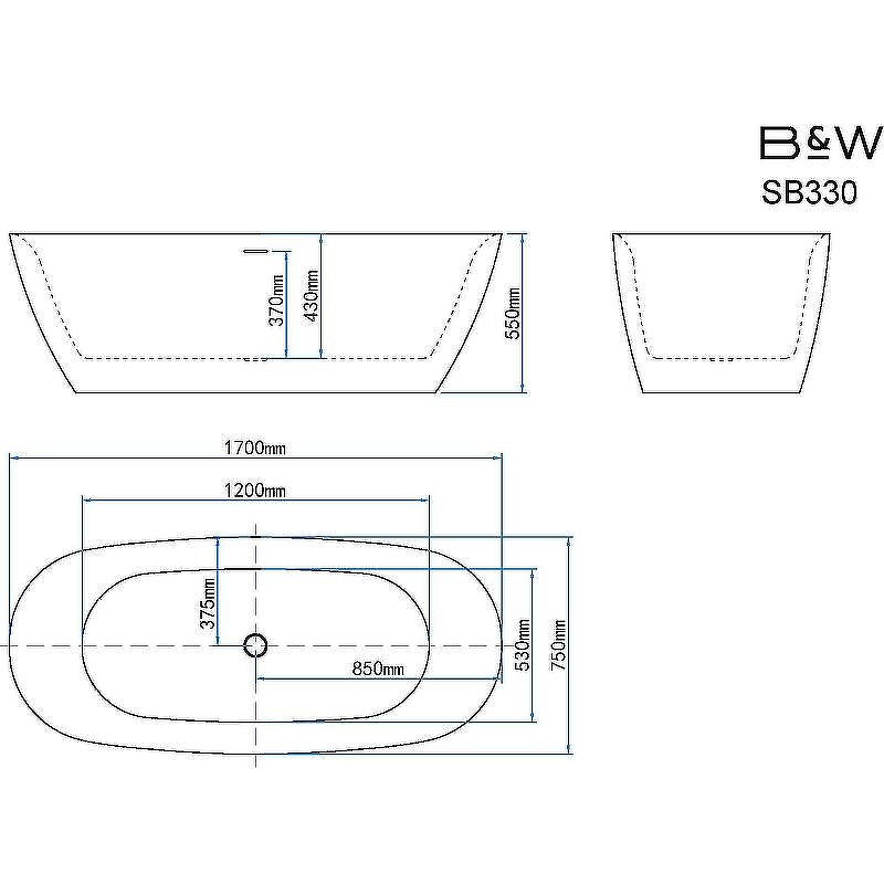 Ванна акриловая Black&White Swan 330SBGR 170*75 см (серый)