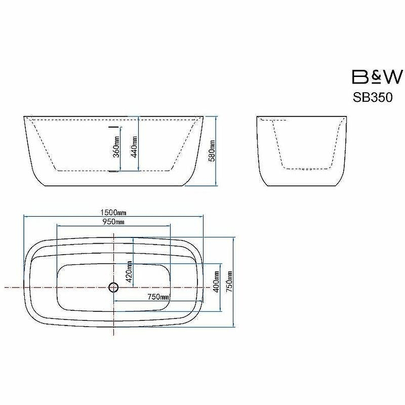 Ванна акриловая Black&White Swan 350SB00 150*75 см (белый)