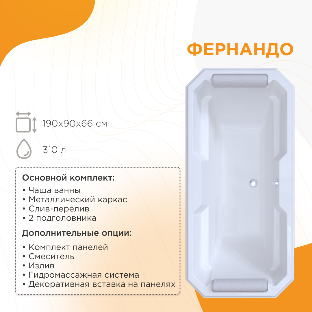 Ванна акриловая Radomir Fra Grande Фернандо 4-01-4-0-1-421 190*90 см (белый/бронза) с каркасом