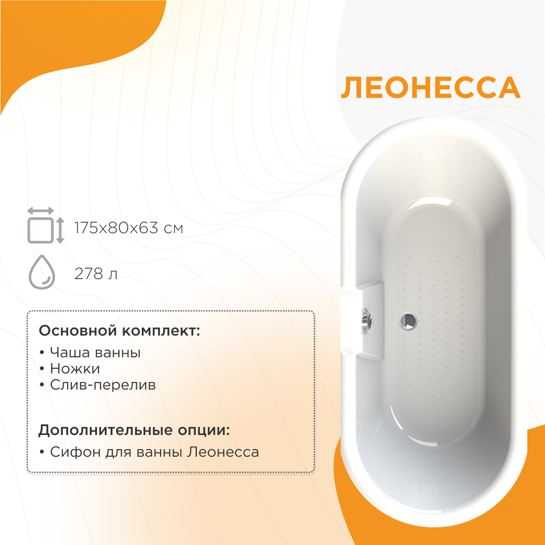 Ванна на ножках "Леонесса" 175х80 - настоящий восторг для истинных ценителей роскоши и классических интерьеров.