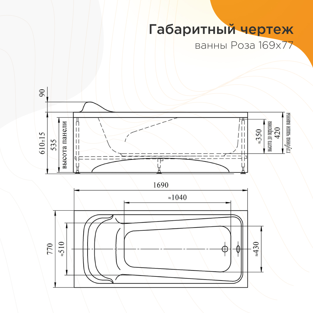 - Толщина листа ванны, мм 5