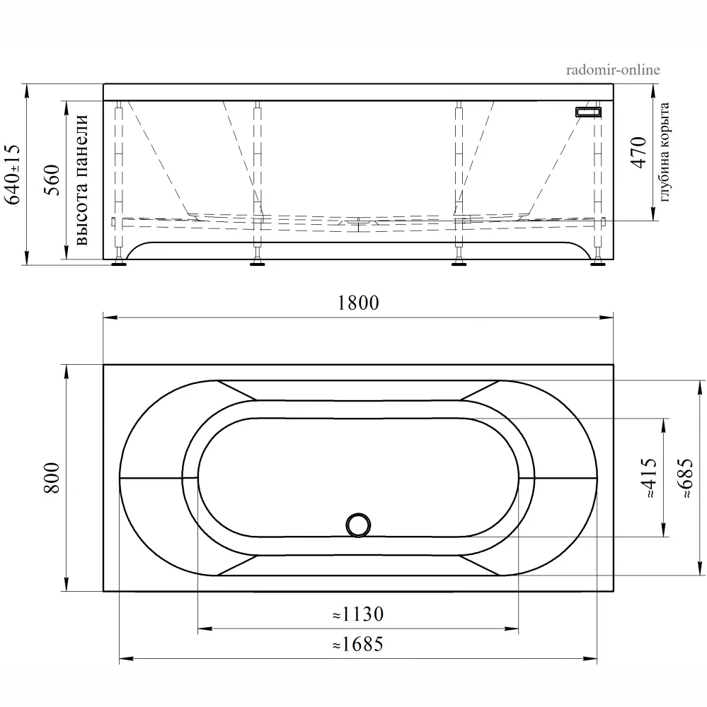 Ванна акриловая Radomir Вальс 1-01-0-0-1-183 180*80 см (белый) с каркасом