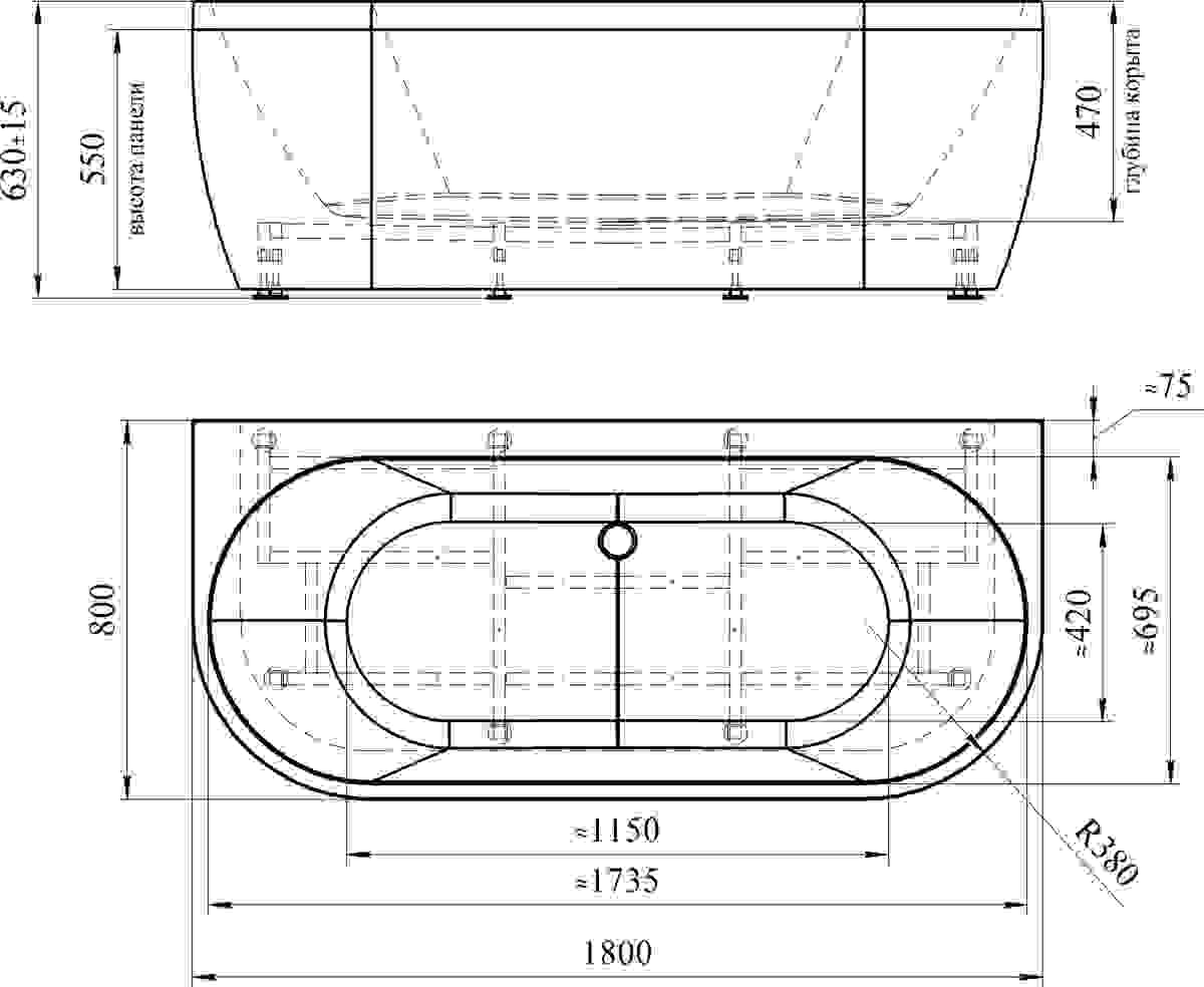 Ванна акриловая Radomir Вальс Макси 1-01-0-0-1-188 180*80 см (белый) с каркасом