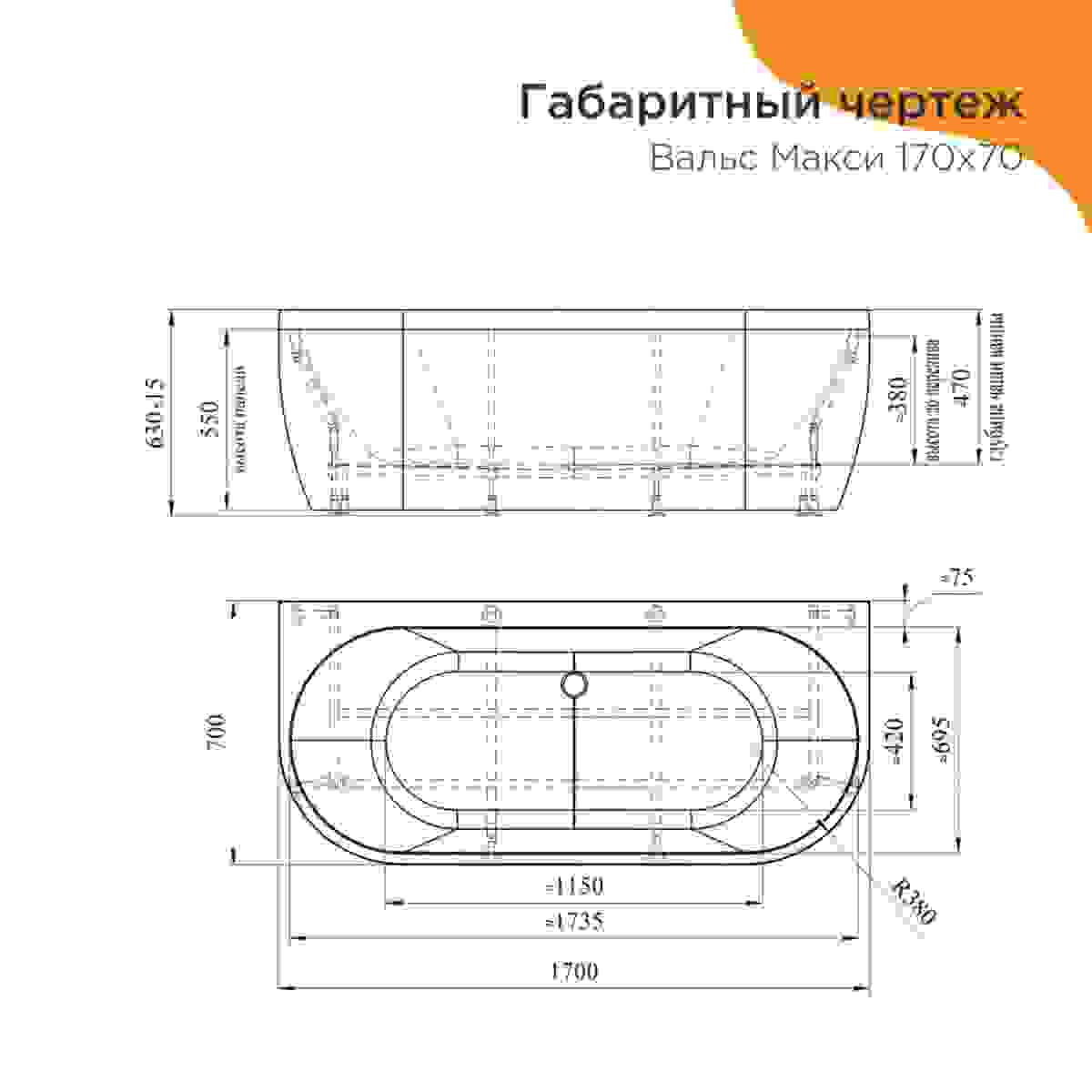 - Акриловая ванна "Вальс Макси" 170х70 имеет современный минималистичный дизайн, покоряет своей выразительностью и создает особенную, легкую атмосферу в ванной комнате.