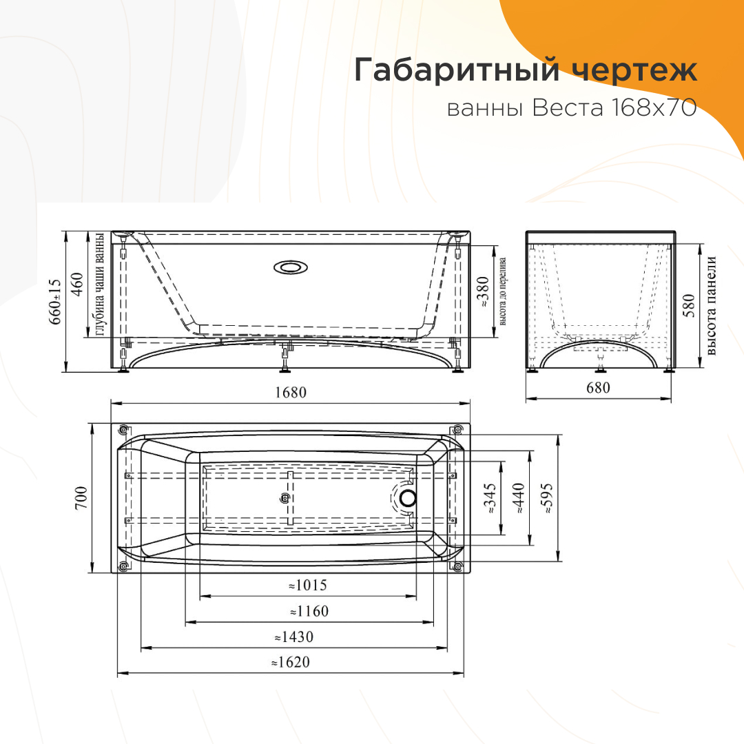 Ванна акриловая Radomir Веста 2-01-0-0-1-237Р 168*70 см (белый) с каркасом