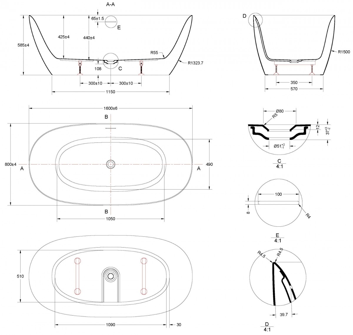 Ванна акриловая Vincea VBT-708-1600 160*80 см (белый)