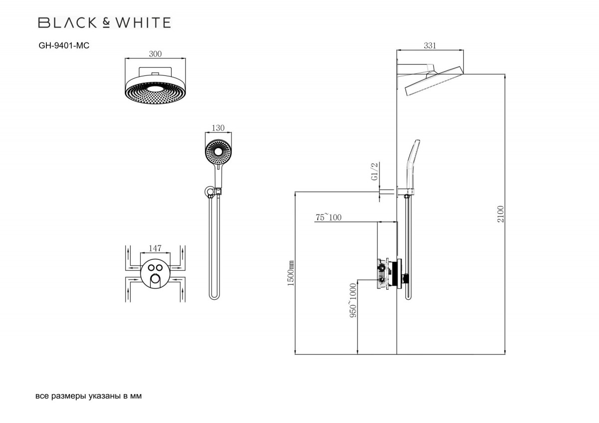 Встраиваемая душевая система Black&White Gravity 9401C (хром) с термостатом