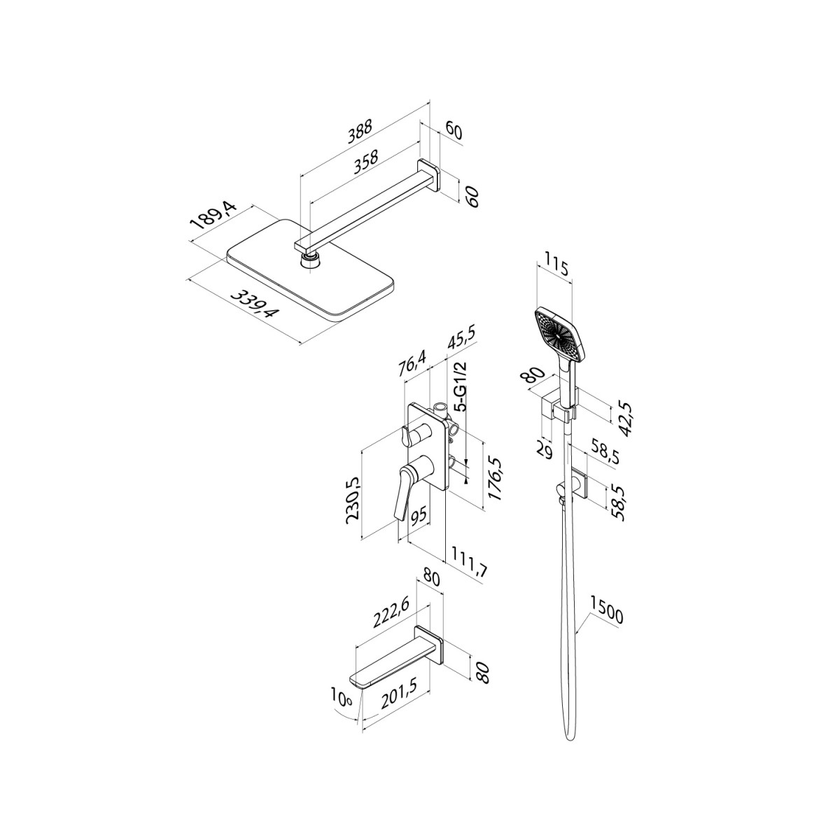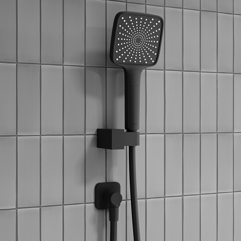 - Встраиваемая душевая система Parker в чёрном матовом цвете – практичная и стильная, её дизайн сочетает в себе трендовый минимализм форм и четкие грани. Готовый комплект включает всё необходимое для создания уютного и функционального пространства: смеситель, верхняя лейка с кронштейном для тропического душа, настенный излив, большая ручная лейка с 3 режимами, душевой шланг 1,5 м и выход для подключения шланга с держателем.
