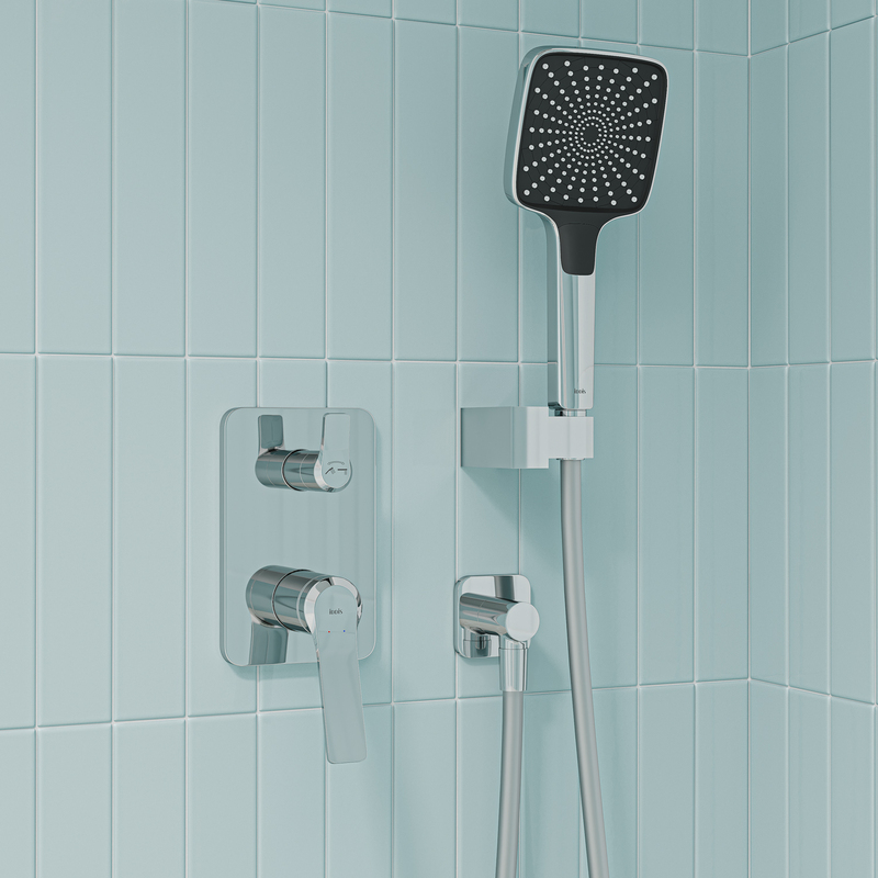 - Встраиваемая душевая система Parker в универсальном глянцевом хроме – практичная и стильная, её дизайн сочетает в себе трендовый минимализм форм и четкие грани. Готовый набор включает всё необходимое для создания уютного и функционального пространства: смеситель, верхняя лейка с кронштейном для тропического душа, большая ручная лейка с 3 режимами, душевой шланг 1,5 м и выход для подключения шланга с держателем для лейки.