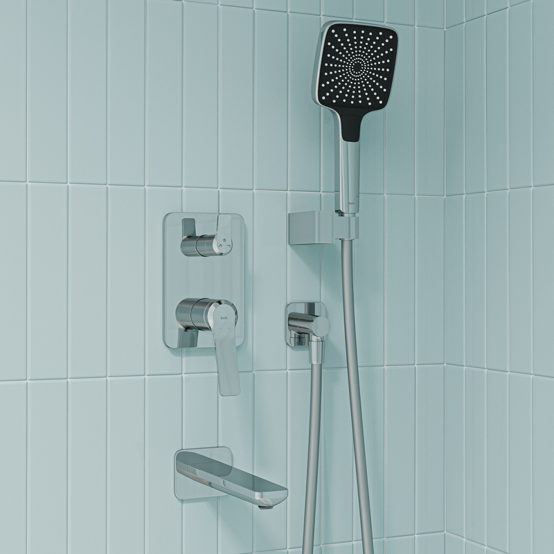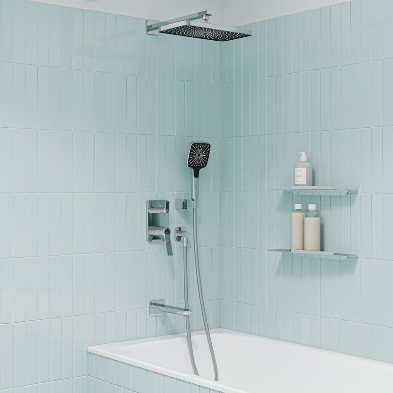 - Встраиваемая душевая система Parker в универсальном глянцевом хроме – практичная и стильная, её дизайн сочетает в себе трендовый минимализм форм и четкие грани. Готовый комплект включает всё необходимое для создания уютного и функционального пространства: смеситель, верхняя лейка с кронштейном для тропического душа, настенный излив, большая ручная лейка с 3 режимами, душевой шланг 1,5 м и выход для подключения шланга с держателем.
