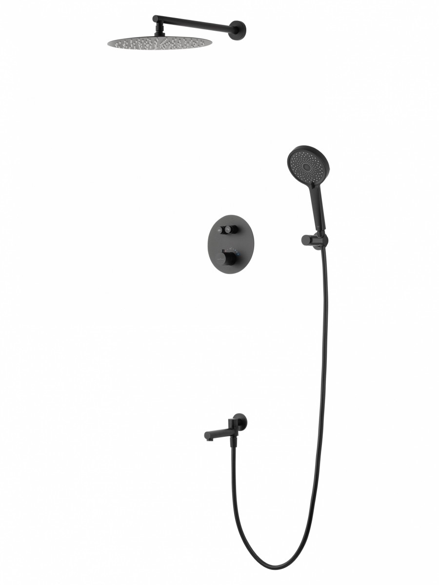 Встраиваемая душевая система Wonzon & Woghand STICK WW-88929010-MB (чёрный матовый) с термостатом