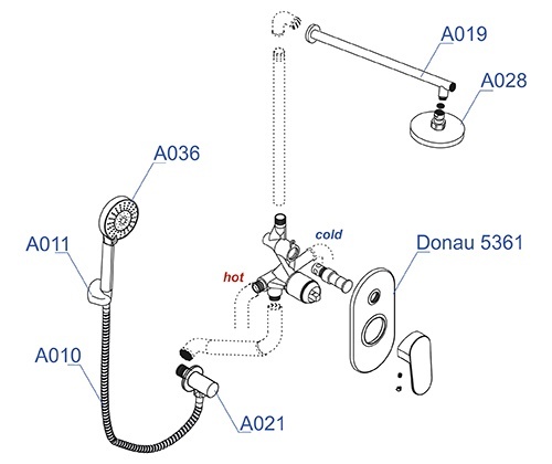 Встраиваемая душевая система WasserKRAFT Donau А14028 (хром/черный)