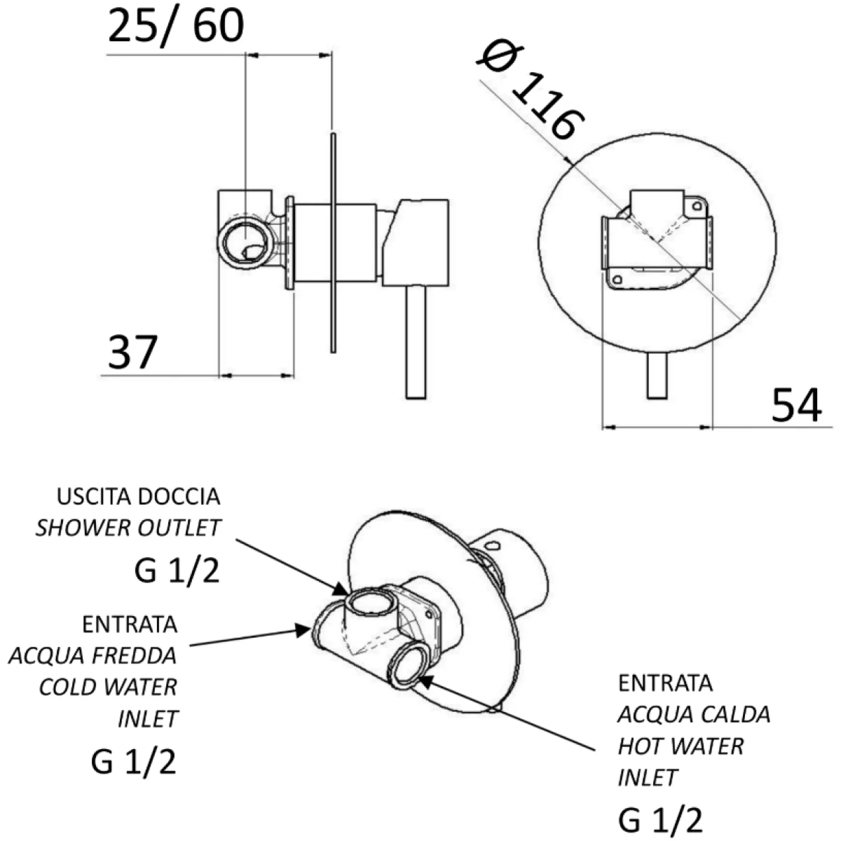 Встраиваемый смеситель для душа Mariani Next B37179NS (белый матовый)