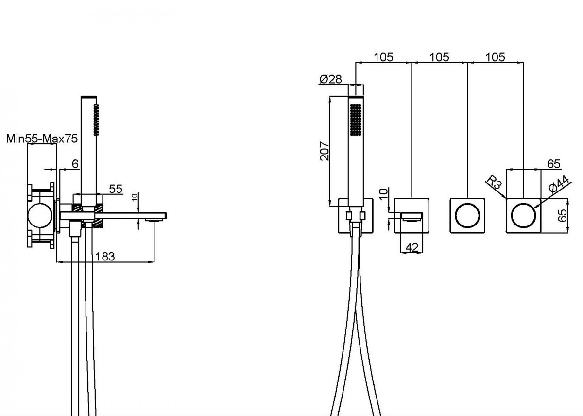 - Длина излива, мм: 183