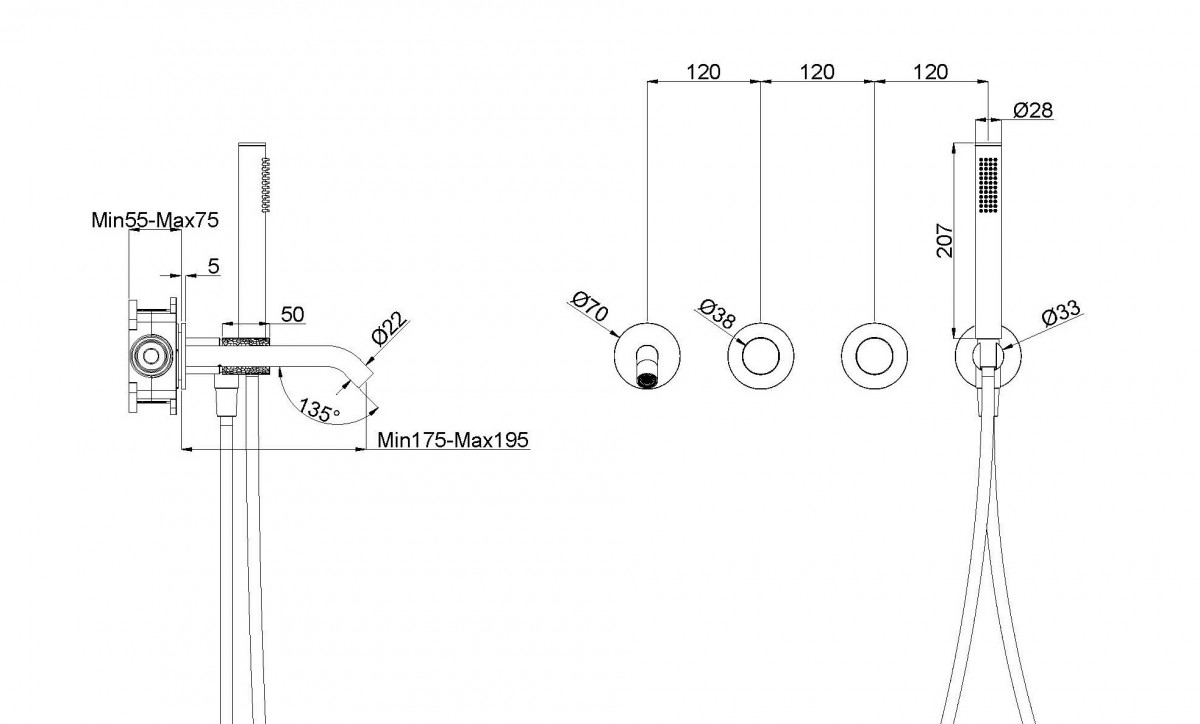 - Длина излива, мм: 195