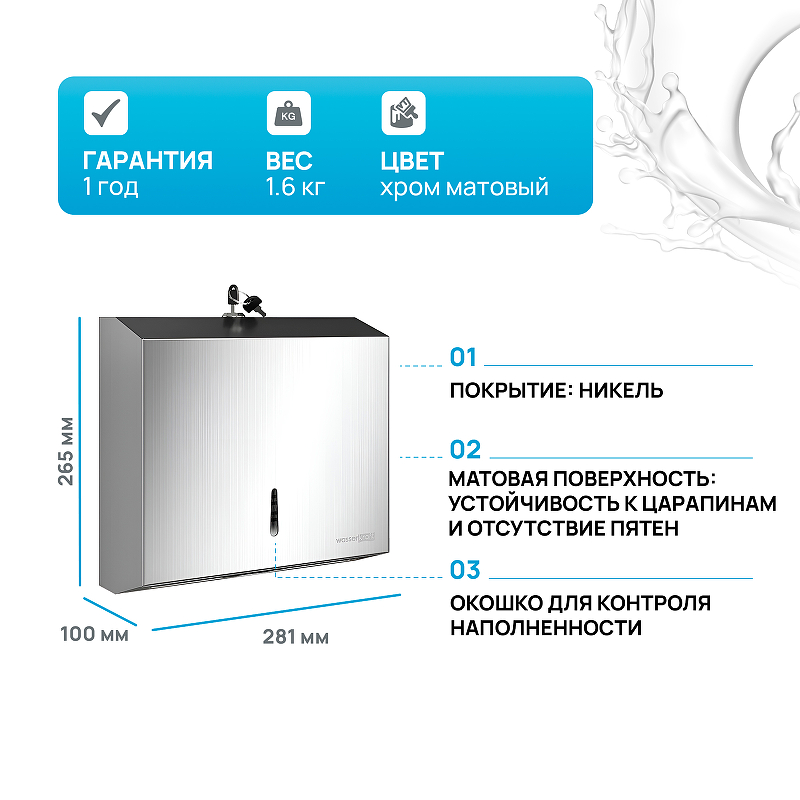 Диспенсер для бумажных полотенец WasserKRAFT K-10091 (никель матовый)