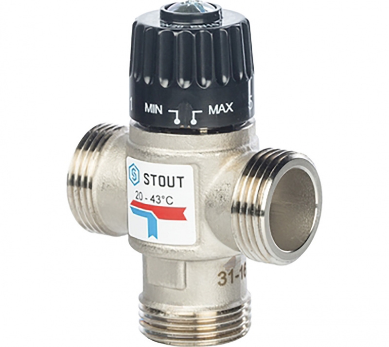 Клапан термостатический STOUT ГВС. 1" НР 20-43°С KV 1,6