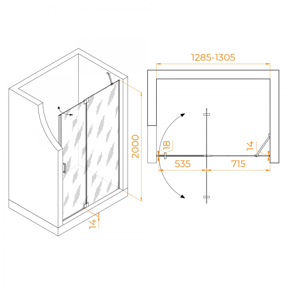 Душевая дверь RGW Hotel HO-014B 1300*2000 мм (чёрный/прозрачное)