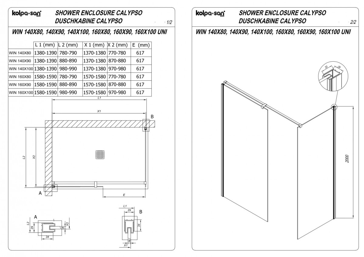 Душевая перегородка Kolpa-San Calypso WIN 1400*2000 мм (хром/прозрачное)
