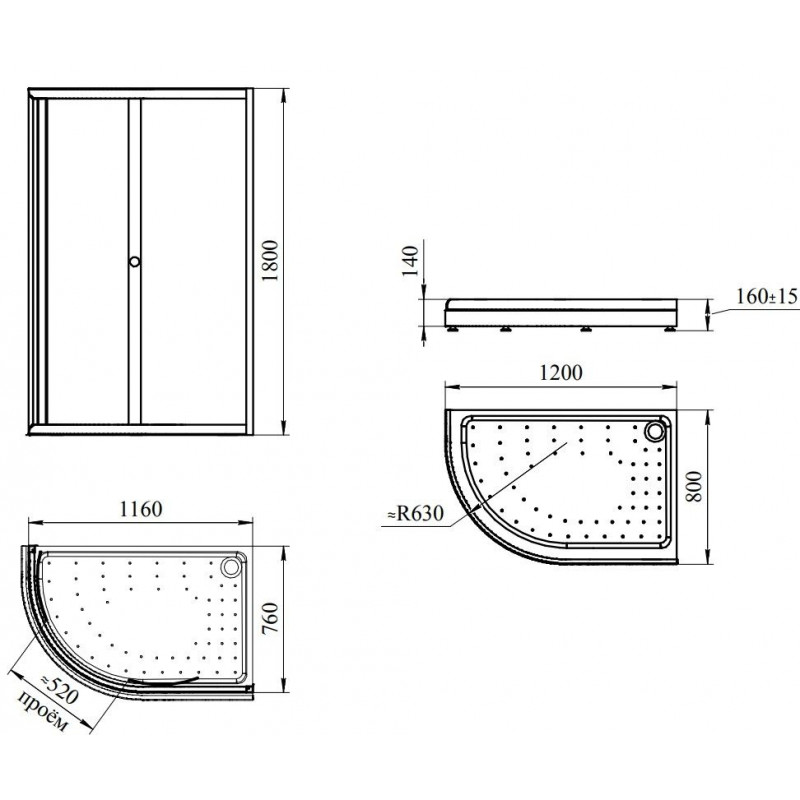 Душевой уголок Radomir Соул 1-09-6-0-0-0080 1200*800 мм (чёрный матовый/прозрачное)
