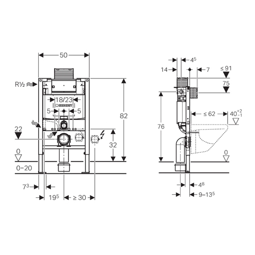 - Бачок скрытого монтажа с фронтальным/горизонтальным механическим управлением.