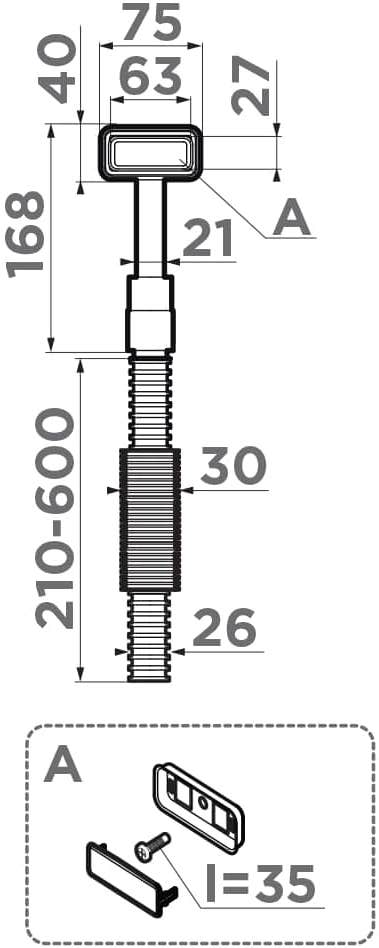 • Сменный прямоугольный перелив для арматуры серии WK подходит для моек с прямоугольным переливом.