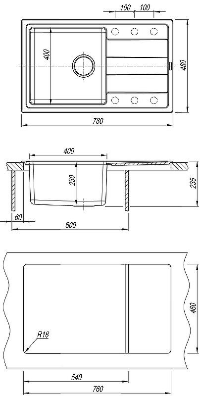 - Комплектация: мойка, отводная арматура с выпуском 3 ½"