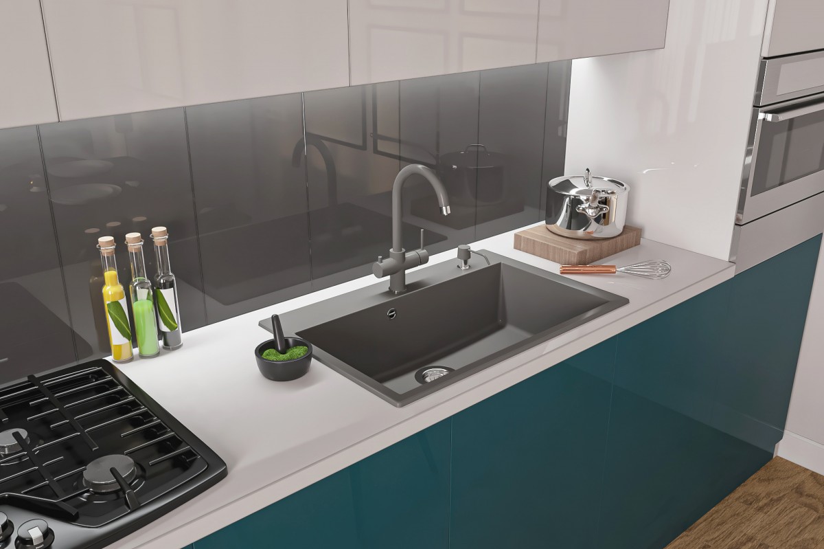 - Композитный материал устойчив к механическим повреждениям и воздействиям высокой температуры. Благодаря низкой пористости поверхность кухонной мойки не впитывает грязь.