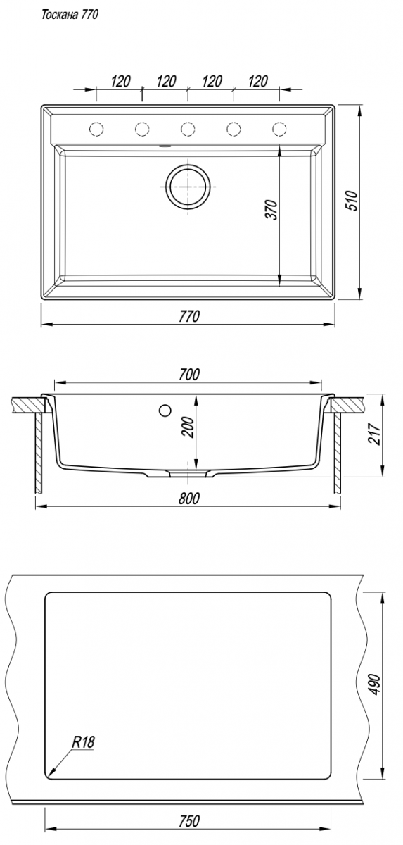 - Предусмотрено 3 намеченных отверстий под смеситель и для установки аксессуаров.