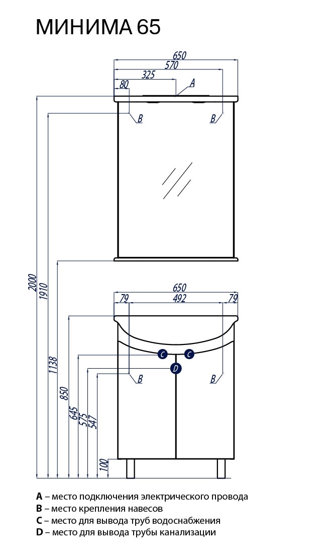 Тумба под раковину Aquaton Минима Н 65 см (белый)