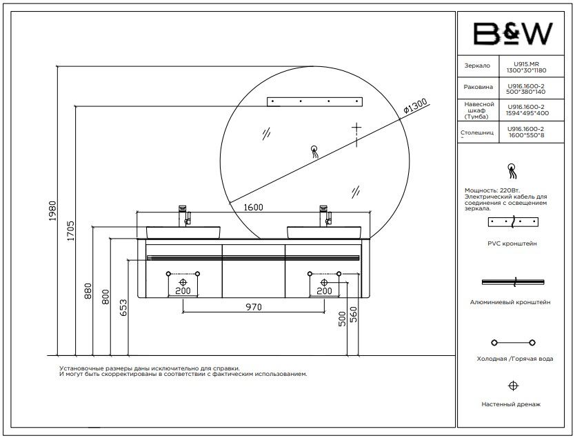 Тумба с раковиной Black&White Universe 9161600-2 160 см (бежевый) подвесная