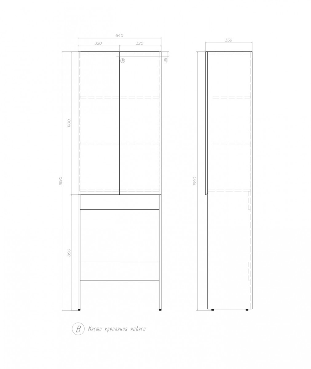 Оснащение: 2 дверцы; петли с механизмом доводчика, 2 полки ЛДСП; интегрированная ручка