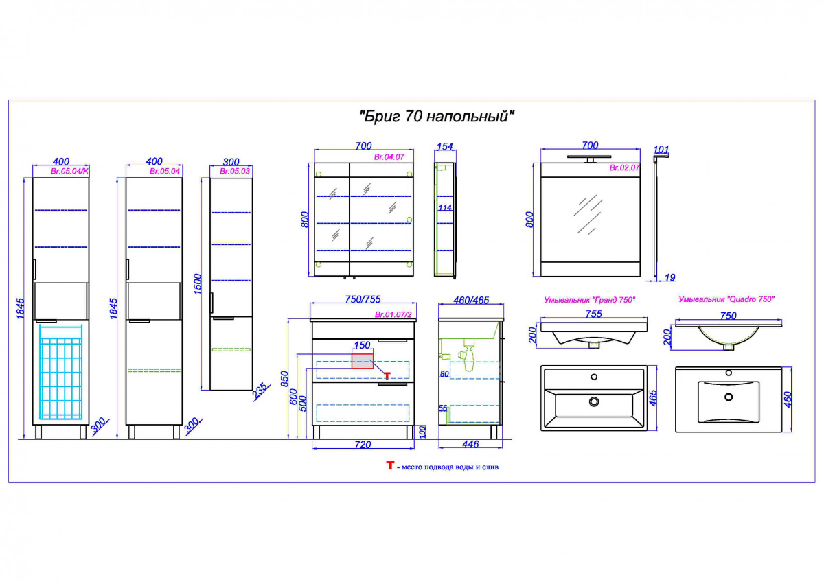 Зеркальный шкаф Aqwella Бриг Br.04.07/W 700*800 мм (белый)