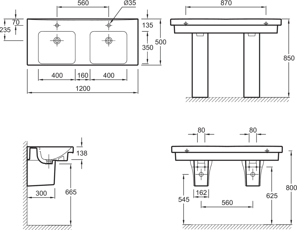 Раковина двойная Jacob Delafon Odeon Up E4730-00 1200*500 мм (белый)