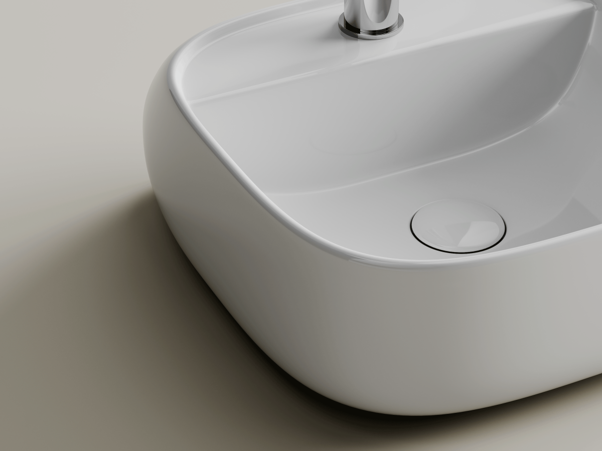 Раковина накладного и подвесного монтажа. Отверстия на задней части раковины под крепеж позволяют подвешивать раковину на стену. Крепления для установки в комплекте. Раковина глазурированная с 4 х сторон. С отверстием под смеситель. Защитный бортик от выплеска воды