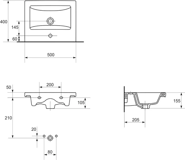 | Готовые отверстия под смеситель |