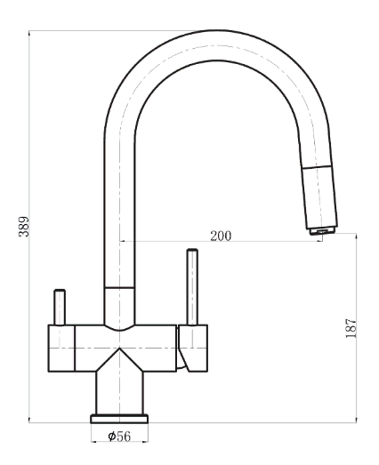 - Высота излива: 187 мм