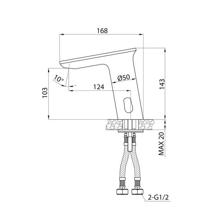 - Подключение к системе водоснабжения Гибкая подводка из нетоксичной EPDM резины в оплетке из нержавеющей стали, М10 - 1/2, длина 350 мм