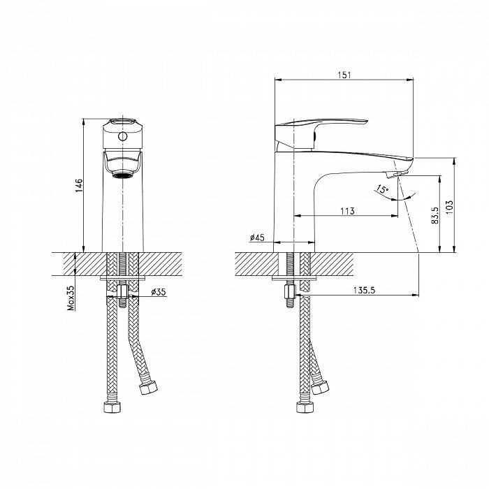 | Подключение к системе водоснабжения: | Гибкая подводка из нетоксичной EPDM резины в оплетке из нержавеющей стали, М10 - 1/2, длина 350 мм |